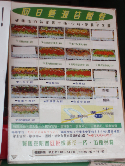 放置好行李後,打電話給怡臻詢問附近有啥吃的剛好她推薦的向日葵海苔飯卷就在附近