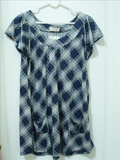 第一件深藍色格紋連身裙